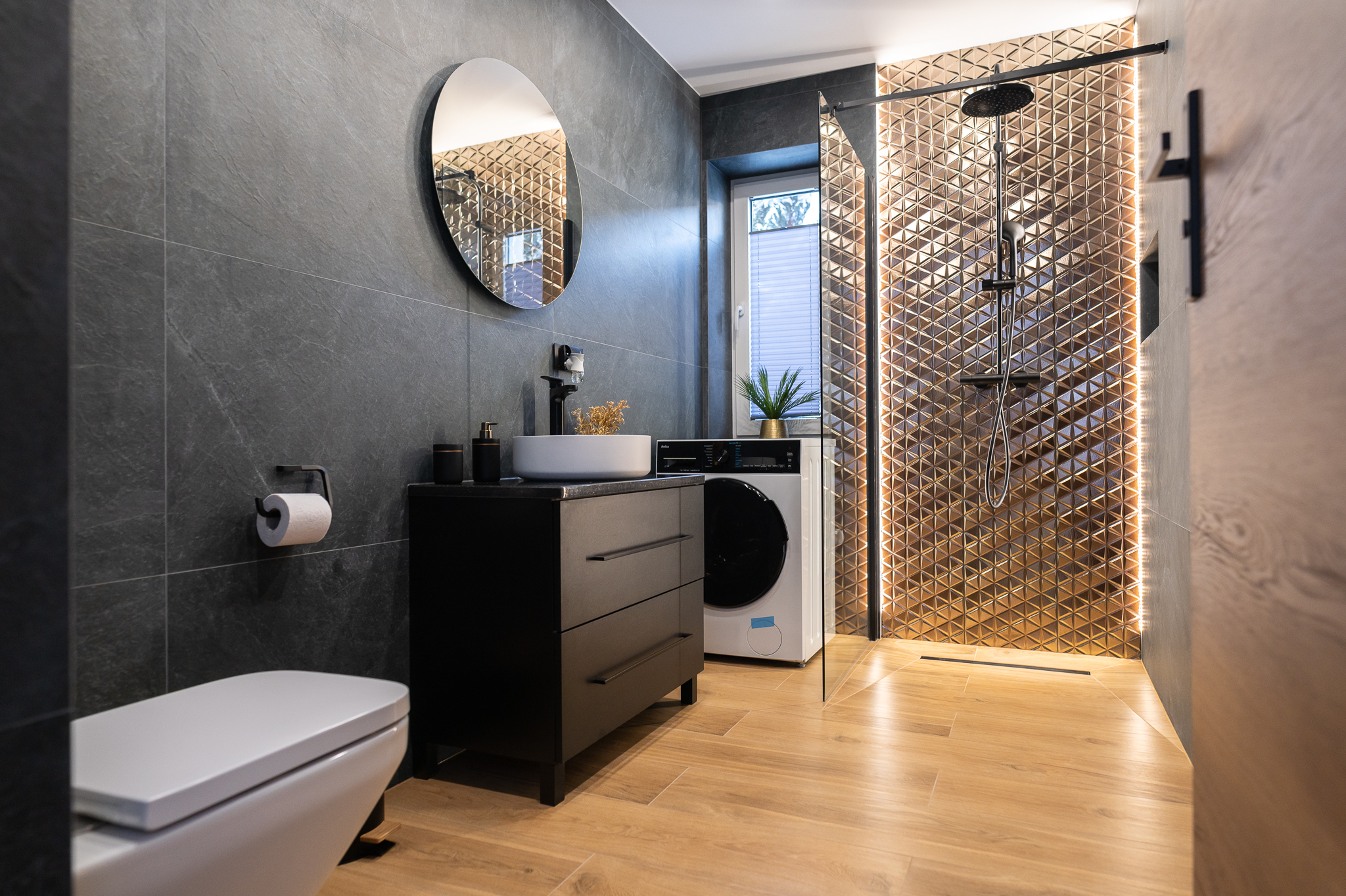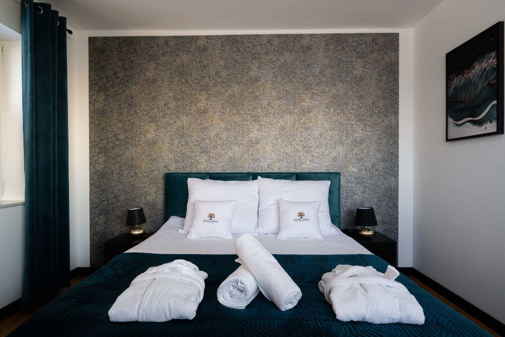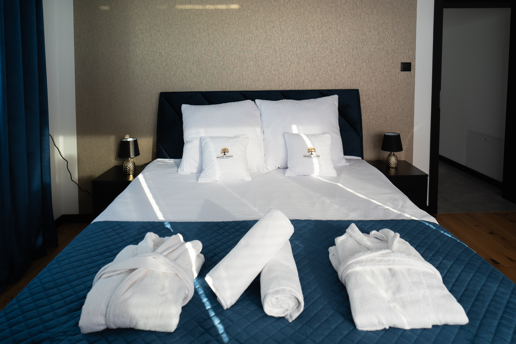 Apartament Golden składa się z przestronnego salonu, w którym czeka komfortowa sofa, z miękkimi poduszkami, będąca dodatkowym miejscem do spania. Nowoczesny aneks kuchenny, wyposażony w wysokiej klasy sprzęt, ułatwi przygotowanie posiłku dla bliskich. A dodatkowo dwie sypialnie, , nowoczesną łazienką, prysznicem, suszarką do włosów i .